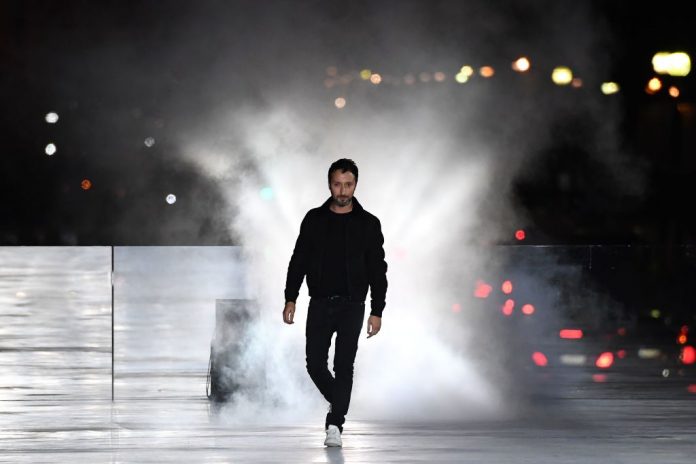 “Conscious of the current circumstance and its waves of radical change, Saint Laurent has decided to take control of its pace and reshape its schedule,” the Belgian-born creator said in an Instagram post, with the Eiffel Tower, the traditional backdrop to its shows, in the background.